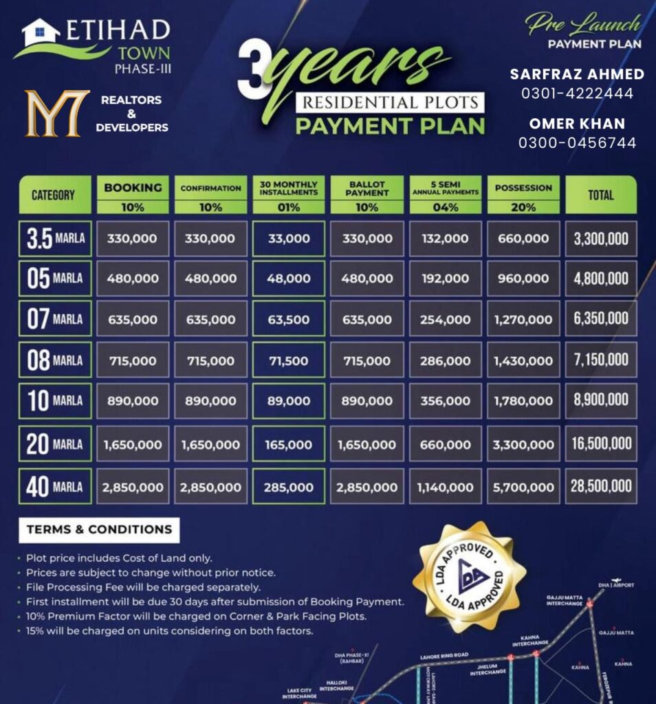 Etihad Town Phase 3 continues the legacy of excellence with cutting-edge development, modern architecture, and unmatched community living. Located strategically in Lahore, it offers exceptional residential and commercial opportunities designed for smart investors and families seeking comfort, style, and value.